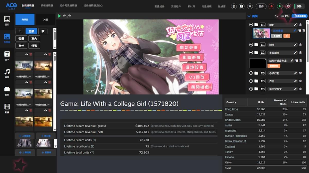 以自身力量設計出 ACG Creator,想讓同樣無經驗、不會寫程式的人,也能創作出熱銷國內外的作品。